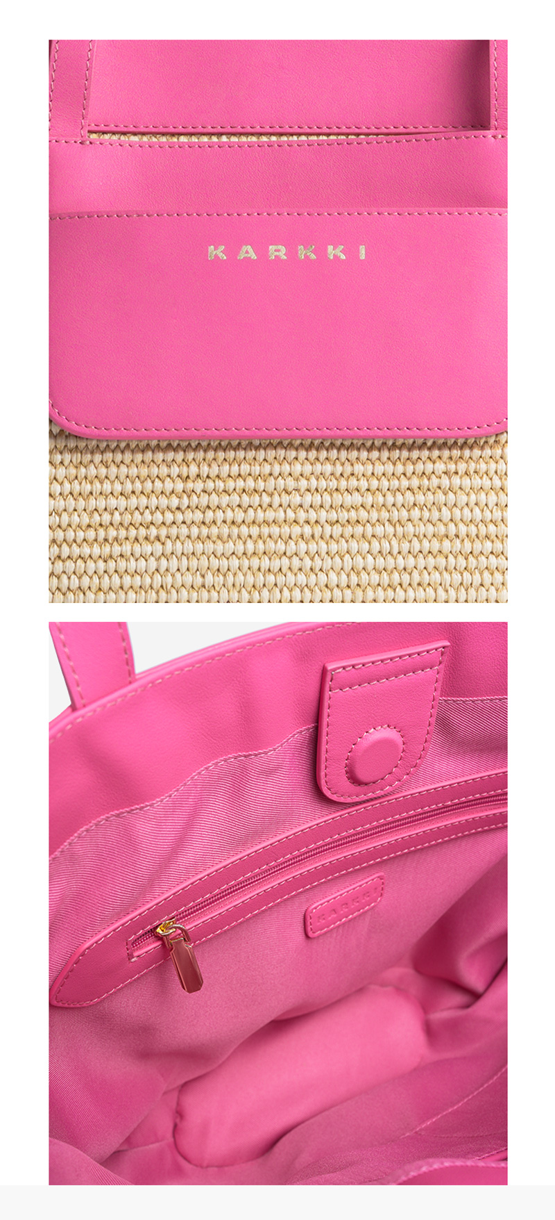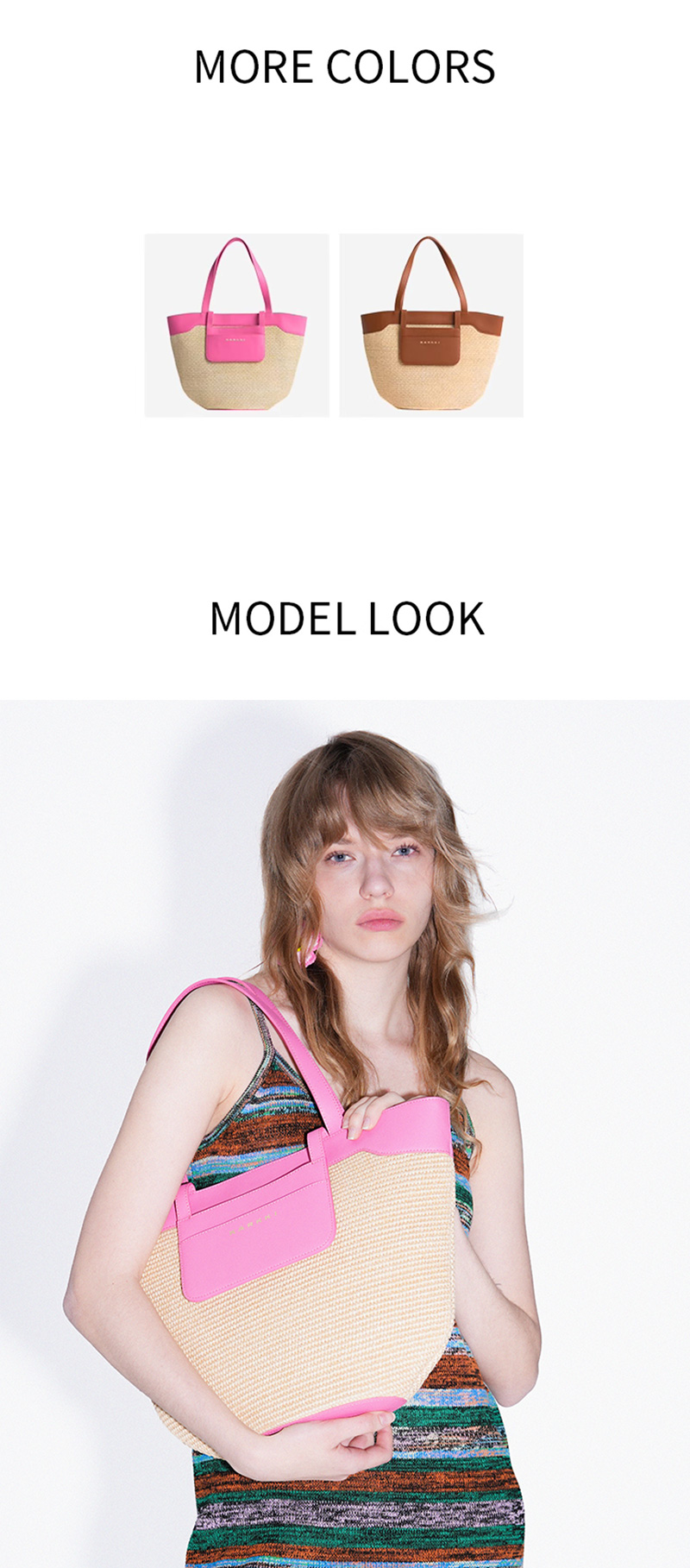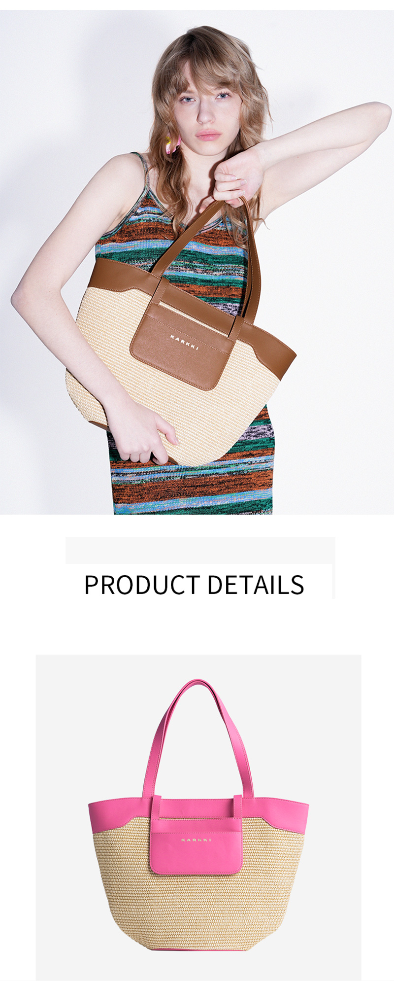 Woven large capacity tote bag with French top layer cowhide and grass woven handbag